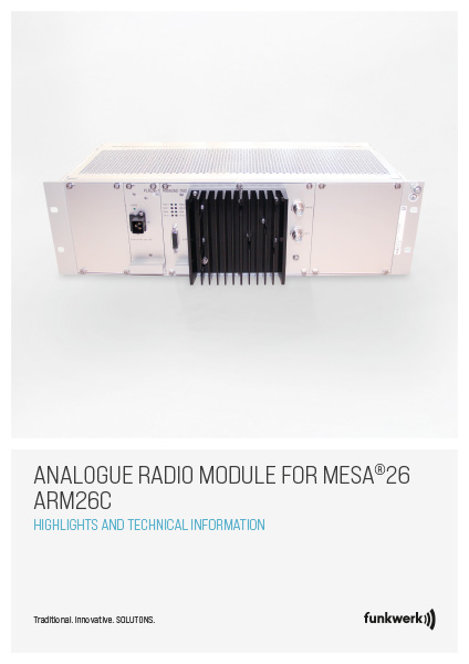 El ARM26C es un componente de radio analógico del sistema de radio para trenes MESA26 con protección IP20. El dispositivo permite la comunicación operativa en los siguientes sistemas de radio analógicos: banda de 70 cm de acuerdo con UIC 751-3 y banda de 2 m de acuerdo con los requisitos específicos del cliente.