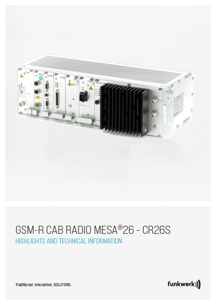 La Cabradio CR26S incluye el módulo de radio digital MT5E, la unidad de control CON26S y la fuente de alimentación. El aparato puede combinarse opcionalmente con la unidad transmisora y receptora analógica RMA26S y los módulos de interfaz (UIC26S, SDIO26S, SPIO26S). El montaje CON26S constituye la unidad central de control. Controla la conexión de radio, regula las prioridades de llamada, controla la unidad de control, el módulo para la radio digital y analógica del tren, las aplicaciones de datos adicionales y los módulos de interfaz. El módulo de radio digital MT5E permite la transmisión de datos y voz y funciona de acuerdo con GSM 05.05 Fase 2+ en la siguiente gama de frecuencias GSM: Gama de frecuencias de transmisión: 873 a 915 MHz y gama de frecuencias de recepción: 918 a 960 MHz.