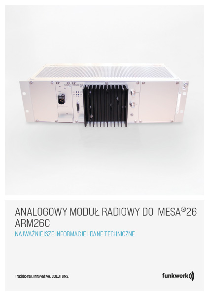 ARM26C jest analogowym komponentem radiowym systemu radiołączności pociągowej MESA26 o stopniu ochrony IP20. Urządzenie umożliwia komunikację operacyjną w następujących analogowych systemach radiowych: pasmo 70 cm zgodnie z UIC 751-3 i pasmo 2 m zgodnie z wymaganiami klienta.