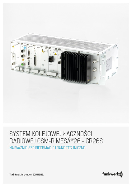 Cabradio CR26S zawiera cyfrowy moduł radiowy MT5E, jednostka sterująca CON26S i zasilacz. Urządzenie można opcjonalnie połączyć z analogowym nadajnikiem i odbiornikiem RMA26S oraz moduły interfejsu (UIC26S, SDIO26S, SPIO26S). Montaż CON26S tworzy centralną jednostkę sterującą. Steruje ona połączeniem radiowym, reguluje priorytety połączeń, steruje jednostką sterującą, modułem cyfrowego i analogowego radia pociągowego, dodatkowymi aplikacjami danych i modułami interfejsu. Moduł radia cyfrowego MT5E Umożliwia transmisję danych i głosu i działa zgodnie z GSM 05.05 Phase 2+ w następującym zakresie częstotliwości GSM: Zakres częstotliwości nadawania: 873 do 915 MHz i zakres częstotliwości odbioru: 918 do 960 MHz.