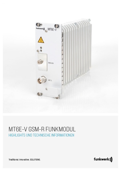 Das MT6E-V ist ein GSM Phase 2+ Funkmodul mit GSM-R und ASCI-Features für erweiterte Sprechfunktionen. Das Modul wird innerhalb des DCS1800-Frequenzbereichs mit der maximalen Sendeleistung von 4W betrieben (GSM Power Class 3).